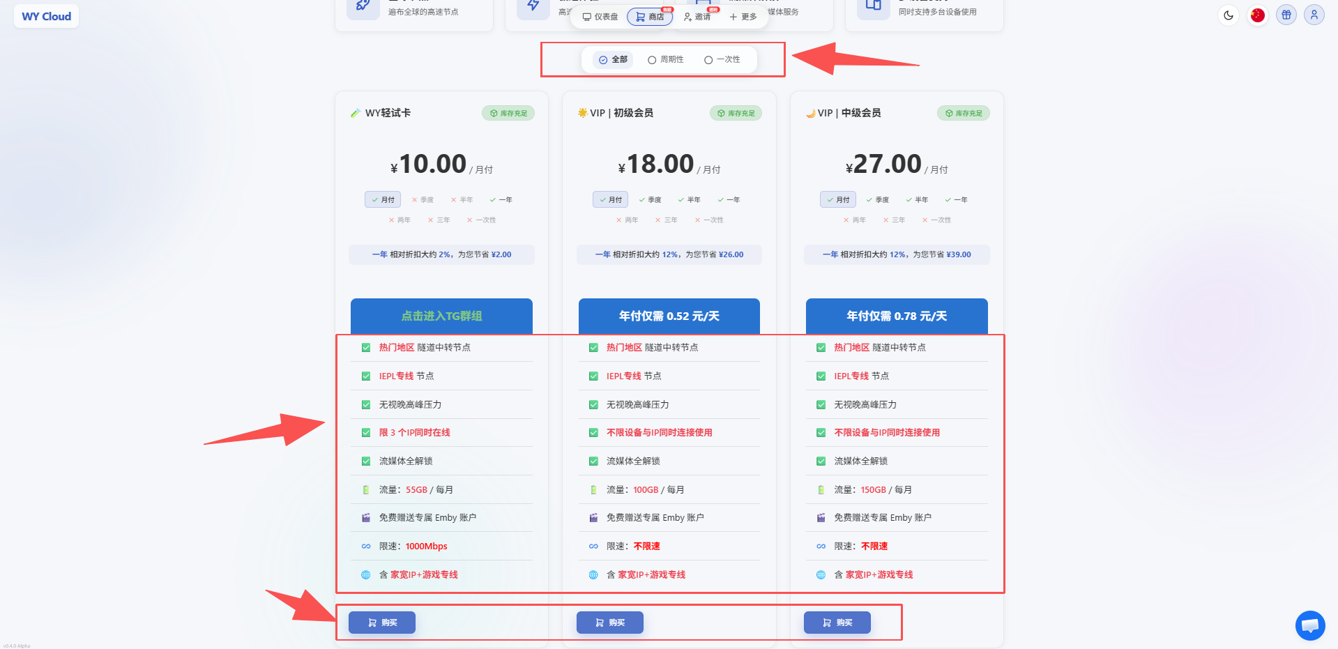 - 根据套餐与订阅内容,选择所需产品并点击 购买