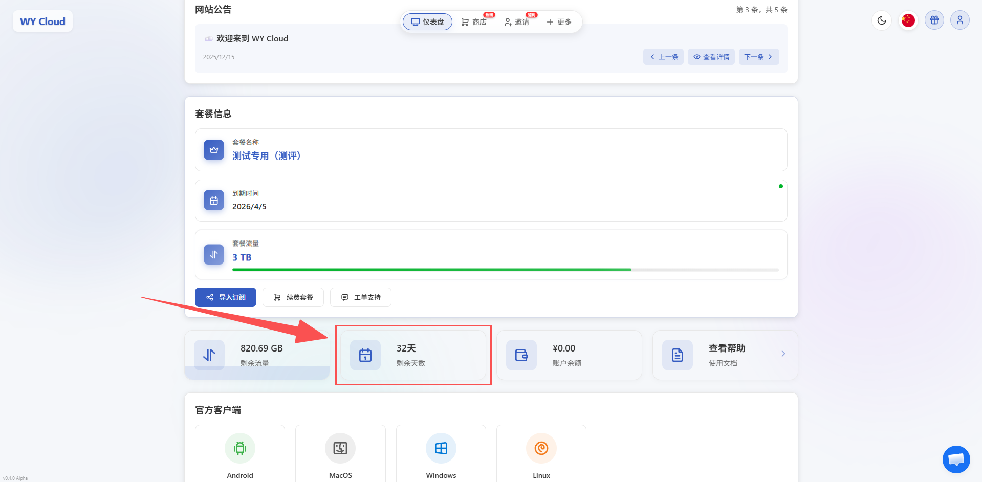 购买 相同套餐 或仅 续费套餐 时,系统 不会重置当前流量,只会在原有套餐基础上 延长套餐有效时间。