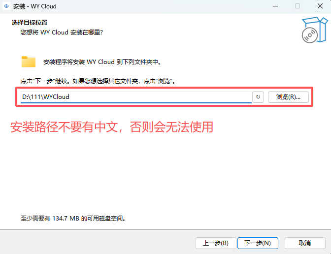 选择安装路径时,请确保路径中不包含中文字符,否则程序可能无法正常使用。
