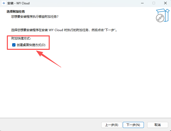 如需创建快捷方式,请勾选【创建桌面快捷方式】→ 点击【下一步】。
