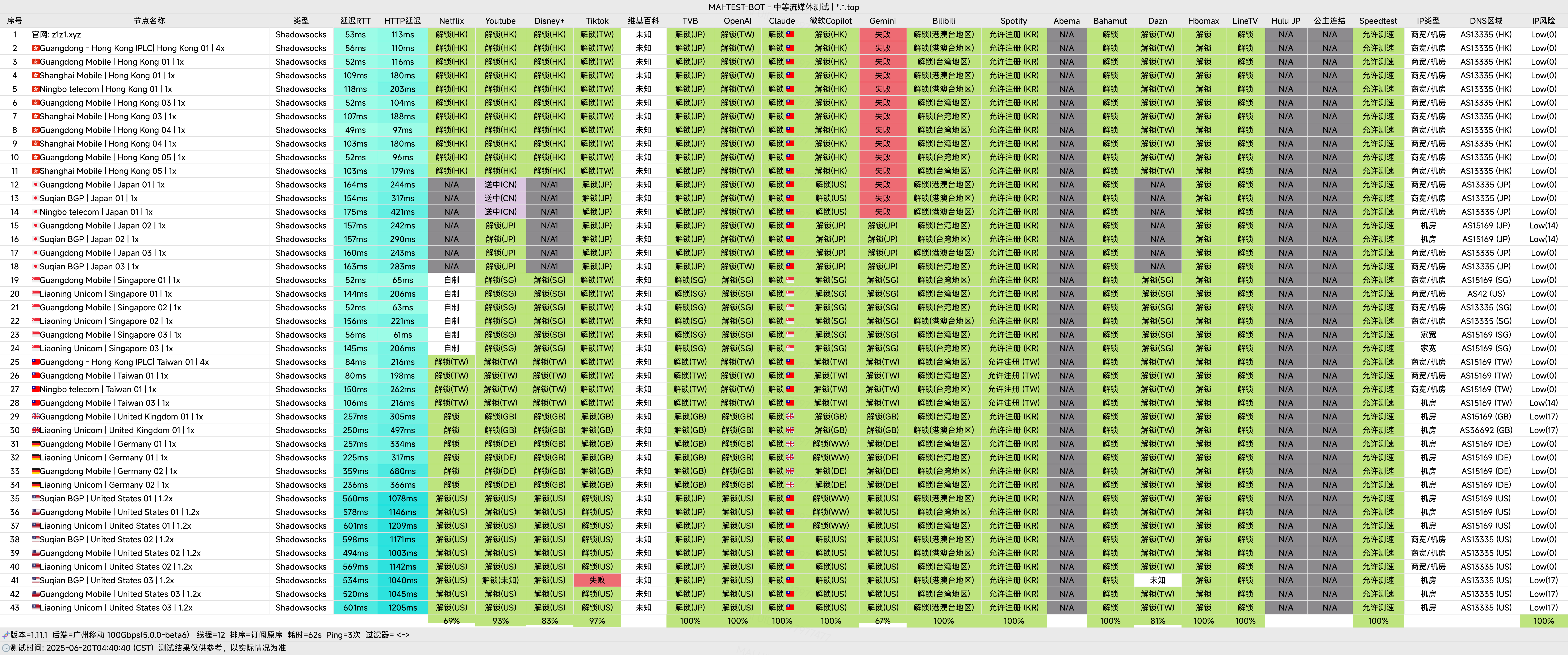 WYCloud 流媒体解锁与测速说明